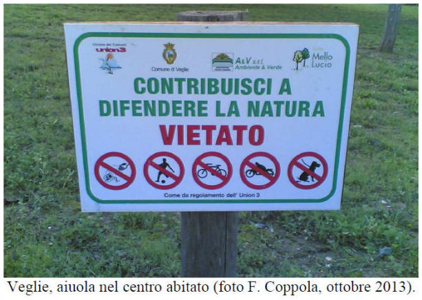 Gentile Signor Sindaco, nella primavera 2010 ho apprezzato il risultato delle elezioni amministrative, perché per la prima volta Veglie ha avuto un sindaco biologo. Contento perché ogni uomo inevitabilmente “porta in politica” la sua competenza professionale, la sua sensibilità, la sua esperienza. Biologia, discorso sulla vita. Con giusta ragione ha ribadito la sua contrarietà al sansificio. Insieme ad altri membri della sua squadra, armato di guanti e sacchi di plastica, ha preso parte ad azioni dimostrative raccogliendo cartacce e bottiglie nelle aree verdi di periferia; perché l’amministratore, figura chiave della comunità, deve essere un modello positivo per i cittadini. In tutte le aiuole pubbliche del centro urbano, è presente segnaletica che invita alla difesa della natura, come è giusto che sia. Se un comunissimo e banale prato artificiale è degno di rispetto, a maggior ragione meriterebbe tutela un’area di macchia mediterranea, di proprietà comunale, di gran lunga più pregiata dal punto di vista naturalistico. E invece, nonostante i ripetuti appelli alla salvaguardia, nella macchia “Lupomonaco” non esiste neanche una tabella che riporti alcun divieto. Ricordo che le regole, prima ancora di avere un aspetto sanzionatorio, hanno una funzione educativa, e sono soprattutto uno strumento di libertà. Intanto, taglio di arbusti, abbandono di rifiuti, incendi e pascolo abusivo distruggono gli ultimi brandelli della macchia d’Arneo. In data 10/12/2013, rispondendo ad un’interpellanza del consigliere Greco, affermava: ”Per quanto riguarda la tutela e valorizzazione della macchia, è una esigenza, ma non siamo riusciti ancora a capire come, se affidare a un bando questa tutela e valorizzazione; non ci sono al momento risorse per fare i muretti a secco, per delimitare, qualcosa si può fare: chiudere i due accessi in modo parziale per impedire a qualche ape e camion che arrivi nella macchia a scaricare. L’istituzione dell’ecomuseo è una iniziativa che potrei affidare al Consigliere Francesco Milanese che su questo aspetto aveva qualche idea per la sua realizzazione. Altro non saprei dire.” Ricordo che il 5/12/2013 il Consiglio Europeo ha adottato il regolamento per il programma “Life 2014-2020”, strumento finanziario per progetti ambientali e sui cambiamenti climatici, prevedendo finanziamenti per 3 miliardi e 456 milioni di euro. Contemporaneamente però, a mio avviso si dovrebbero aggiornare gli strumenti urbanistici, sia per l’area a macchia di proprietà comunale, sia per quelle di proprietà privata, prevedendo l’istituzione di un unico parco naturale. Nella primavera 2013 Le ho proposto un regolamento per il parco, il cui contenuto non è frutto della mia creatività, ma è comune a molti altri parchi e aree verdi, e fa riferimento a normativa ormai consolidata. Non credo che per approvare un regolamento siano necessarie risorse economiche. Senza regole, il parco è destinato a scomparire. Oramai manca poco più di un anno alla conclusione del Suo mandato, pertanto Le rinnovo la mia proposta di approvare il regolamento per il parco naturale, affinché anche i nostri nipoti possano conoscere la bellezza e il fascino della macchia mediterranea.