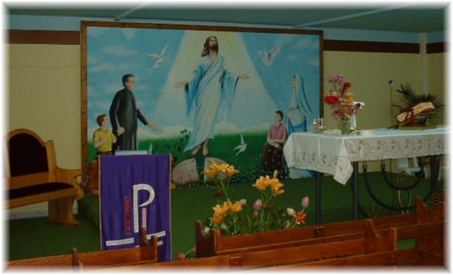 Particolare dell'altare nella cripta della nuova chiesa in costruzione.